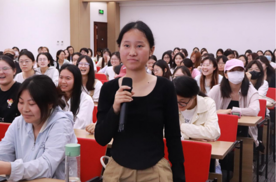 在互动答疑环节,同学们踊跃提问,纷纷提出自己在学英语过程中的困惑和疑问。潘鸣威教授认真解答同学们的疑惑并 告诫同学们,一定要注重基础知识的学习。