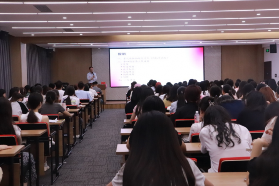 为推动人工智能在语言学习和测试领域的应用与发展,帮助学生更好地了解新时代英语专业四、八级考试,5月18日,外 国语学院特邀请上海外国语大学潘鸣威教授在德正楼一楼学术报告厅举办《当语言测试与人工智能相遇——机遇与挑战》专题讲座。讲座由我院党总支书记闫静主持,我院近200名学生参加了讲座,报告厅座无虚席。