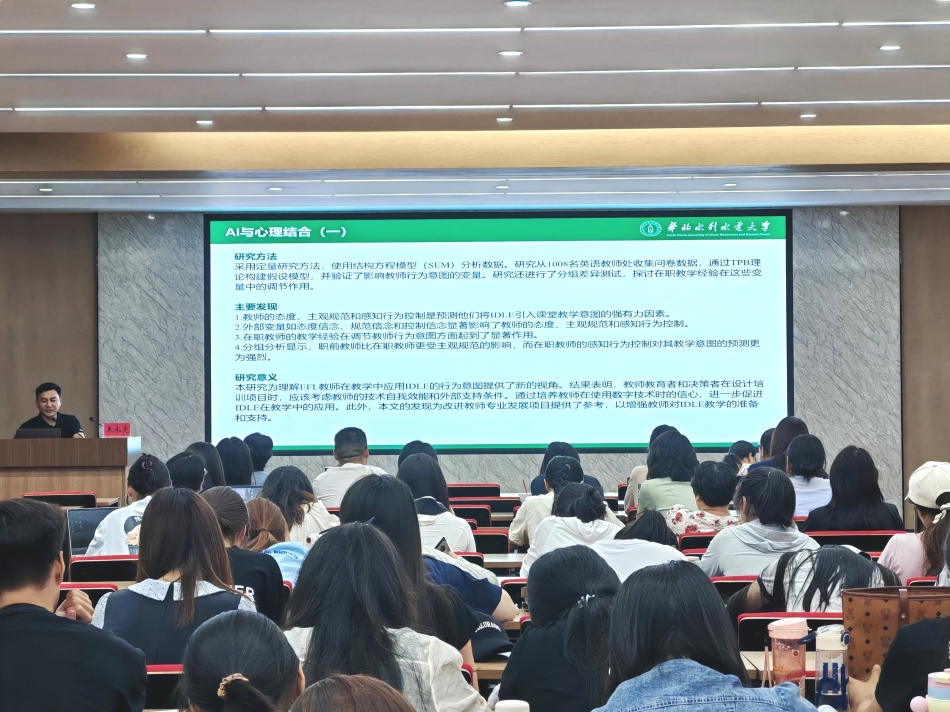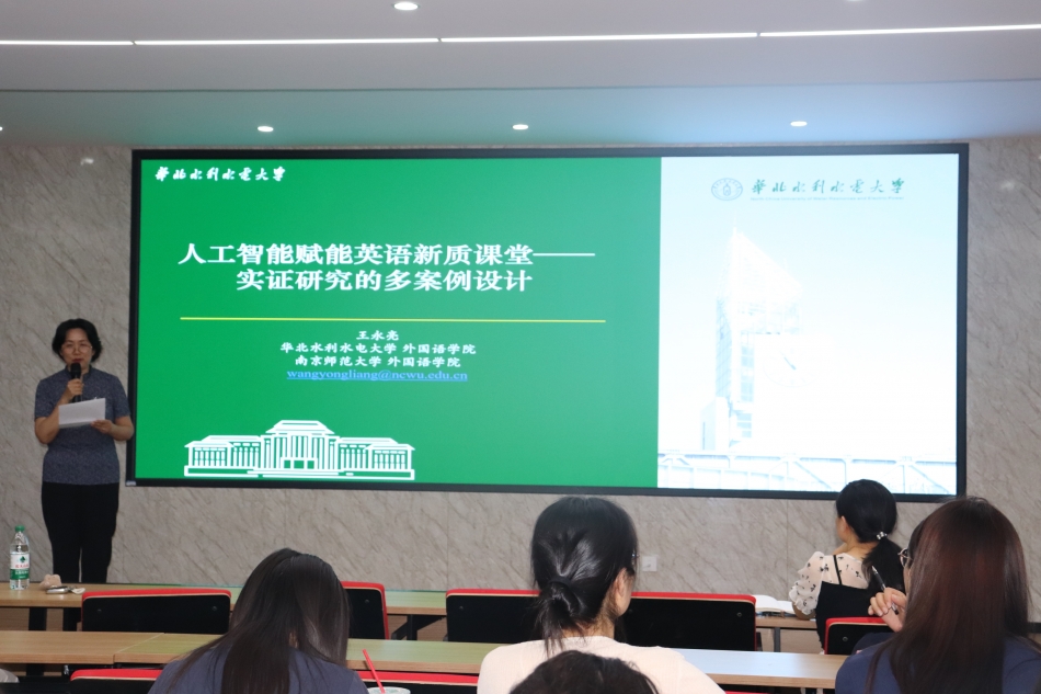 2025年5月19日,郑州财经学院304永利迎来了一场学术盛宴。华北水利水电大学王永亮教授受邀在德正楼第一学术报告厅为我院教师做题为《人工智能赋能新质英语课堂:聚焦研究设计与实践创新的多案例研究》的专题讲座。讲座由304永利院长党兰玲主持,全体教师参加。