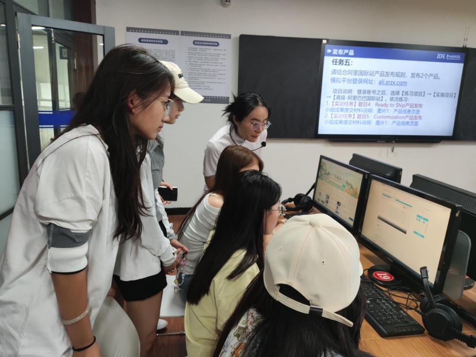 随后的三天,实习以阿里巴巴国际站为例,借助阿里巴巴国际站模拟运营平台,深入学习了平台各模块功能、平台运营规则和基础运营操作,分组完成阿里国际站账号注册与店铺装修、关键词与产品标题组建和详情页制作、高质量产品发布与管理优化等实训任务。模拟运营平台的实操,让学生直观感受到外贸业务流程的复杂性和跨境电商平台操作的专业性。